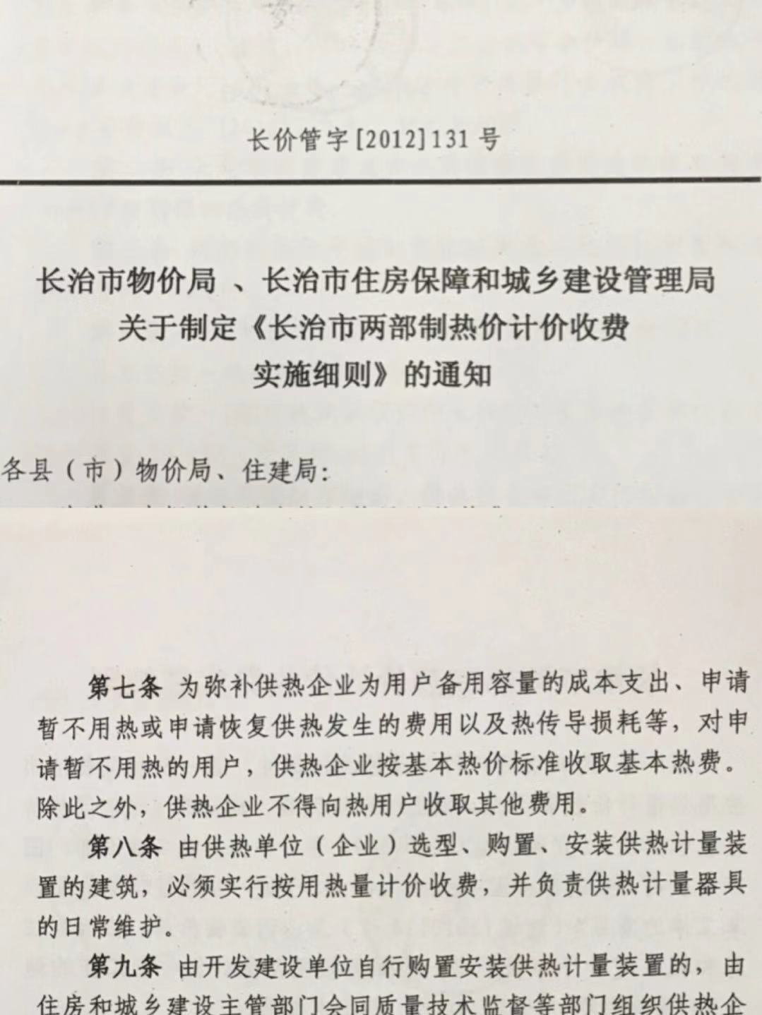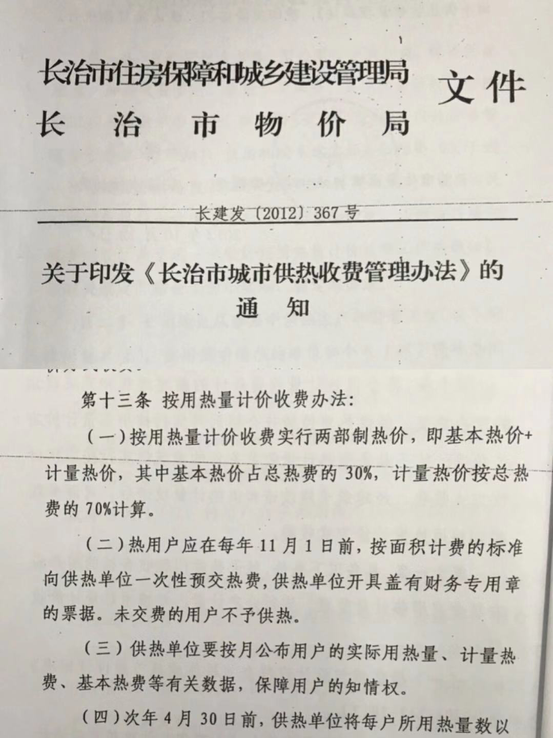 2018年10月22日,長治交通廣播接到孫女士反應(yīng)的供熱費用收取的問題.針對不取暖時收取的30%基本供熱費是否合理的問題,104.1長治交通廣播的記者來到了供熱公司,長治市供熱公司的工作人員為我們做了詳細的解答:“這項費用的收取是正常收費,我公司根據(jù)長價管字[2012]131號文件, 長治市物價局、長治市住房保障和城鄉(xiāng)建設(shè)管理局關(guān)于制定《長治市兩部制熱價計價收費實施細則》的通知文件中的第七條,為彌補供熱企業(yè)為用戶備用容量的成本支出,申請暫不用熱或申請恢復(fù)供熱發(fā)生的費用以及熱傳導(dǎo)損耗等,對申請暫不用熱的用戶,供熱企業(yè)按基本熱價標準收取基本熱費,基本熱費就是總熱價的30%”