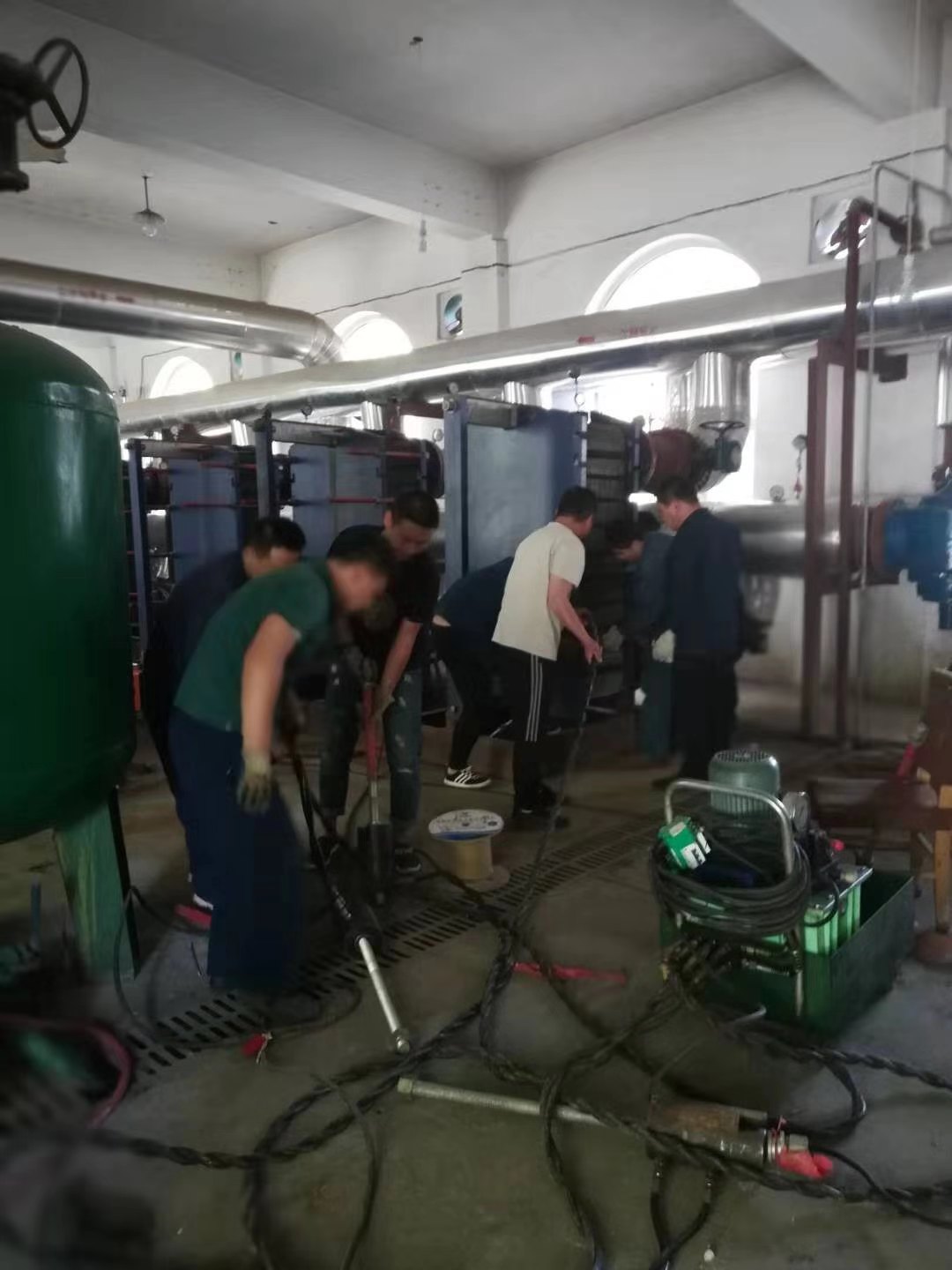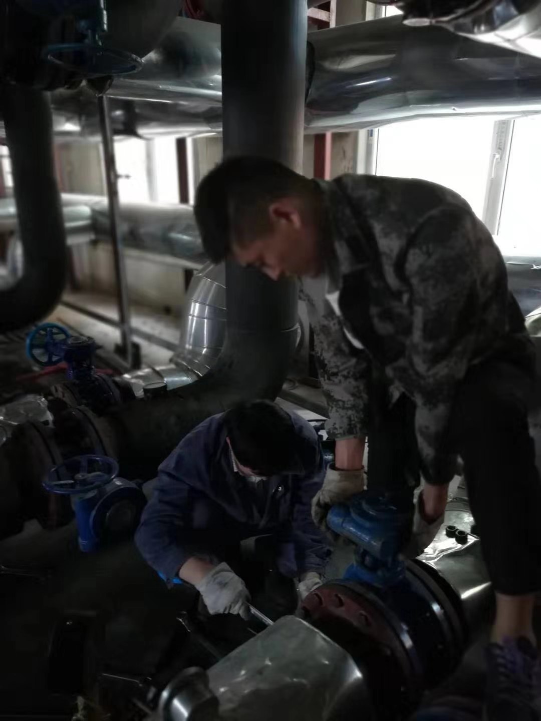 也許大家認為冬季供暖期,熱力人才最辛苦,然而,夏季的我們也依然在奮力奔跑。為了保障下個供暖季設備、管網的安全高效穩(wěn)定運行,在這個看似不需要供熱的“清閑時間”里,我們熱力人對供熱轄區(qū)內所有換熱站的運行設施進行仔細排查,逐個維修保養(yǎng)。在我們熱力人的眼中,小到一顆螺絲釘、大到一臺換熱機組,都是有生命的,在各檢修現場,隨處可見一張張揮汗如雨的面孔。檢修隊員通過反復、維護、保養(yǎng)、檢修,轄區(qū)中的供熱管道以及每一處井室,確保每一個閥門、每一顆螺絲釘。每一個機組都要處于良好的“戰(zhàn)備”狀態(tài),以確保它們在冬季能夠安全高效平穩(wěn)的運行。